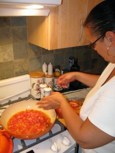 Adjust the onions and garlic according to your taste. I love bringing the onions to a good brown color. I also like using yellow or orange tomatoes, and combining whatever tomatoes I have around, but the plum tomatoes are the best because they have a thinner skin. Mmmmmmmm…enjoy and have fun putting your slant on this, after all, it is just the fresh chopped tomatoes that serve as the base for this recipe.