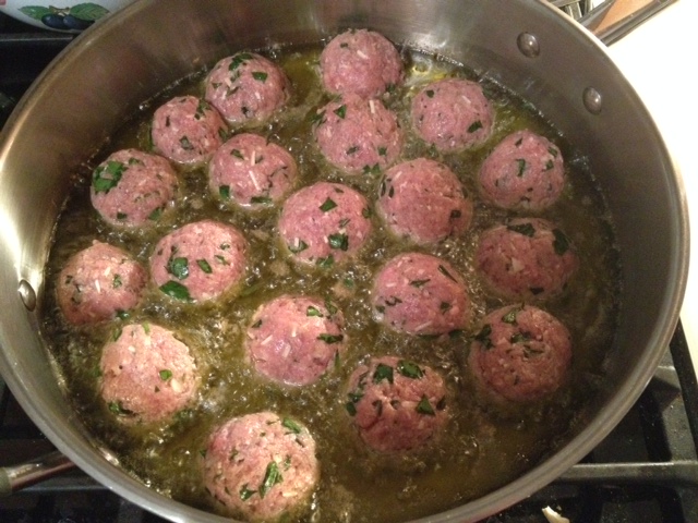 • DO NOT MOVE the meatballs until you see them browning!!!  Then you can turn them over to brown the other side, but don’t move them once you turn them over.