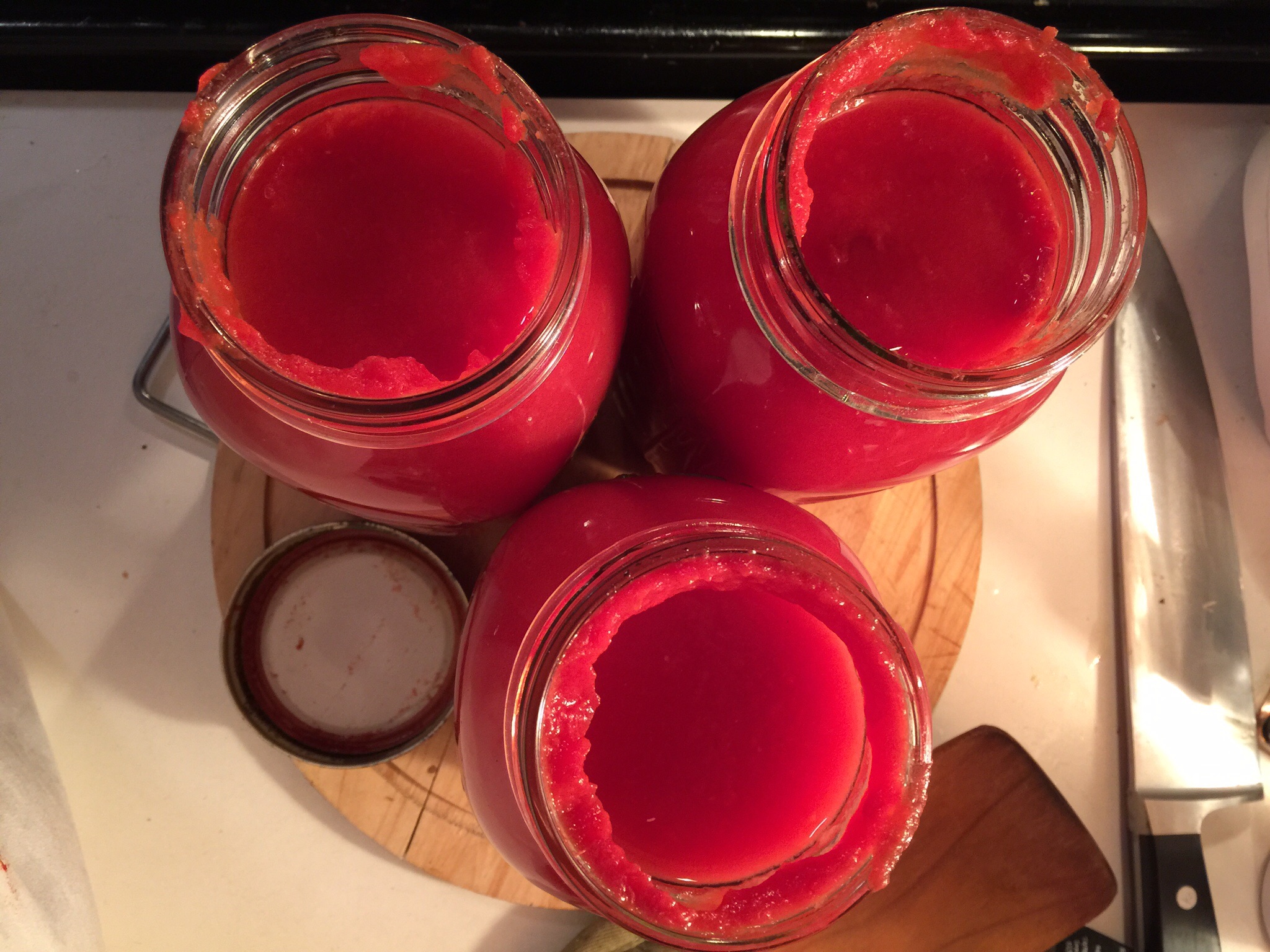 3 jars off “Backyard” Tomato Sauce added to the pot, mix it up to combine well.